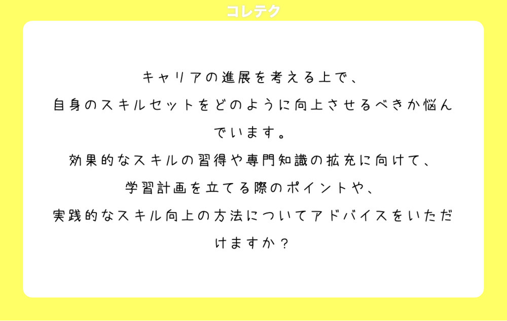 キャリアの進展を考える上で、自身のスキルセットをどのように向上させるべきか悩んでいます。効果的なスキルの習得や専門知識の拡充に向けて、学習計画を立てる際のポイントや、実践的なスキル向上の方法についてアドバイスをいただけますか?