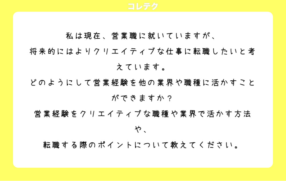 私は現在、営業職に就いていますが、将来的にはよりクリエイティブな仕事に転職したいと考えています。どのようにして営業経験を他の業界や職種に活かすことができますか?営業経験をクリエイティブな職種や業界で活かす方法や、転職する際のポイントについて教えてください。