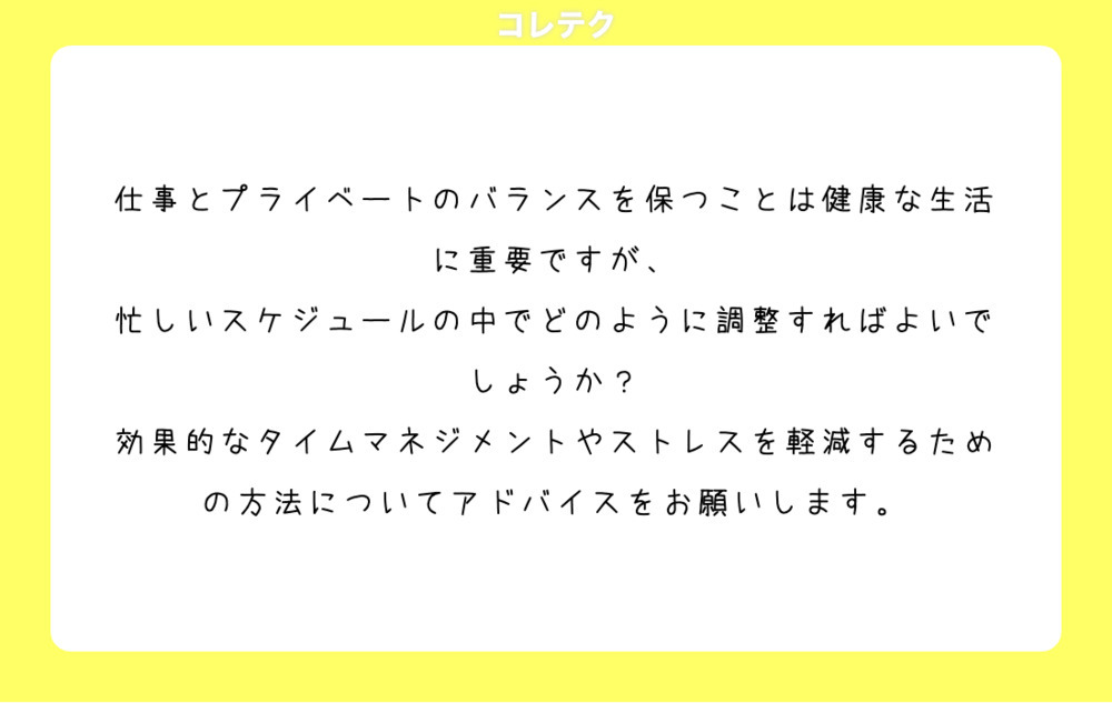 仕事とプライベートのバランスを保つことは健康な生活に重要ですが、忙しいスケジュールの中でどのように調整すればよいでしょうか?効果的なタイムマネジメントやストレスを軽減するための方法についてアドバイスをお願いします。